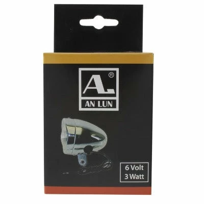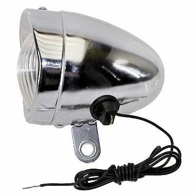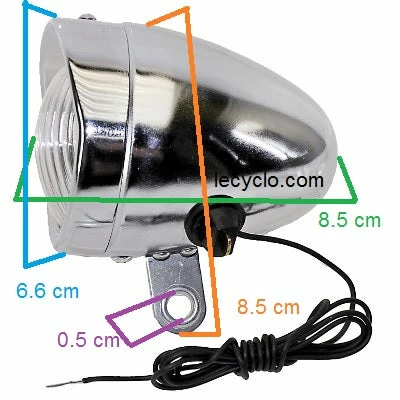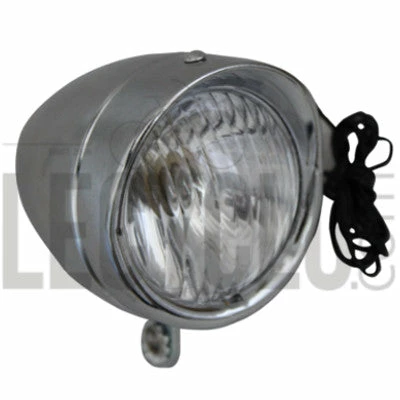 D’une forme ronde, le phare avant possède un puissant éclairage blanc. Avec sa couleur chromée, il permet au cycliste de personnaliser son vélo au style vintage. Fourni avec un câble électrique, il s’allume grâce à un branchement sur dynamo 6V/2.4 W.