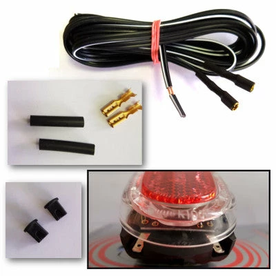 La particularité de ce feu est également d’être très compact. Ce dernier ne pèse que 39 grammes (avec le système de fixation comprenant écrou et rondelle) et mesure 38 x 55 mm. Comme illustré en photo 4, est fourni un câble avec deux entrées femelles adaptées au phare et deux entrées nues à l’autre extrémité. Également fournies, deux fiches femelles seules.