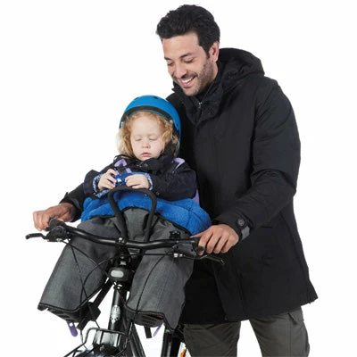 A placer sur le siège vélo avant grâce à un système d’ancrage facile de velcros et de boucles, cette housse protectrice est adaptée pour les enfants de 68 à 92 cm, pour un poids de 9 à 15 kilos. Des boutons pressions permettent un ajustement simple du poncho selon la morphologie de l’enfant. Pour un confort optimal, le dossier du cocon est rembourré. La coquille s’ouvre grâce à un système d’ouverture/fermeture rapide qui permet de placer et désengager l’enfant sans gêne.