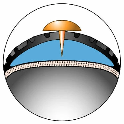- La sous couche SmartGuard protège la bande de roulement. Cette technologie est élaborée à partir d’un caoutchouc spécial à haute capacité élastique. Particulièrement robuste, même une punaise ne peut le traverser. Toutes les matières tranchantes sont repoussées. La protection SmartGuard n’affecte en aucun cas la résistance au roulement de Marathon Plus qui présente, à ce niveau, des caractéristiques identiques à celles d’un pneu non équipé d’une sous-couche de protection.