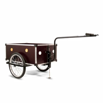 Cette remorque de 25 kg se fixe au vélo par une boule d’attelage au niveau de la tige de selle. Elle supporte alors un chargement de 40 kg max. La remorque Jumbo Roland est aussi tractable à pied. Elle dispose d’une poignée sur la barre de fixation qui permet de transporter alors jusqu’à 100 kg de marchandises à la main.