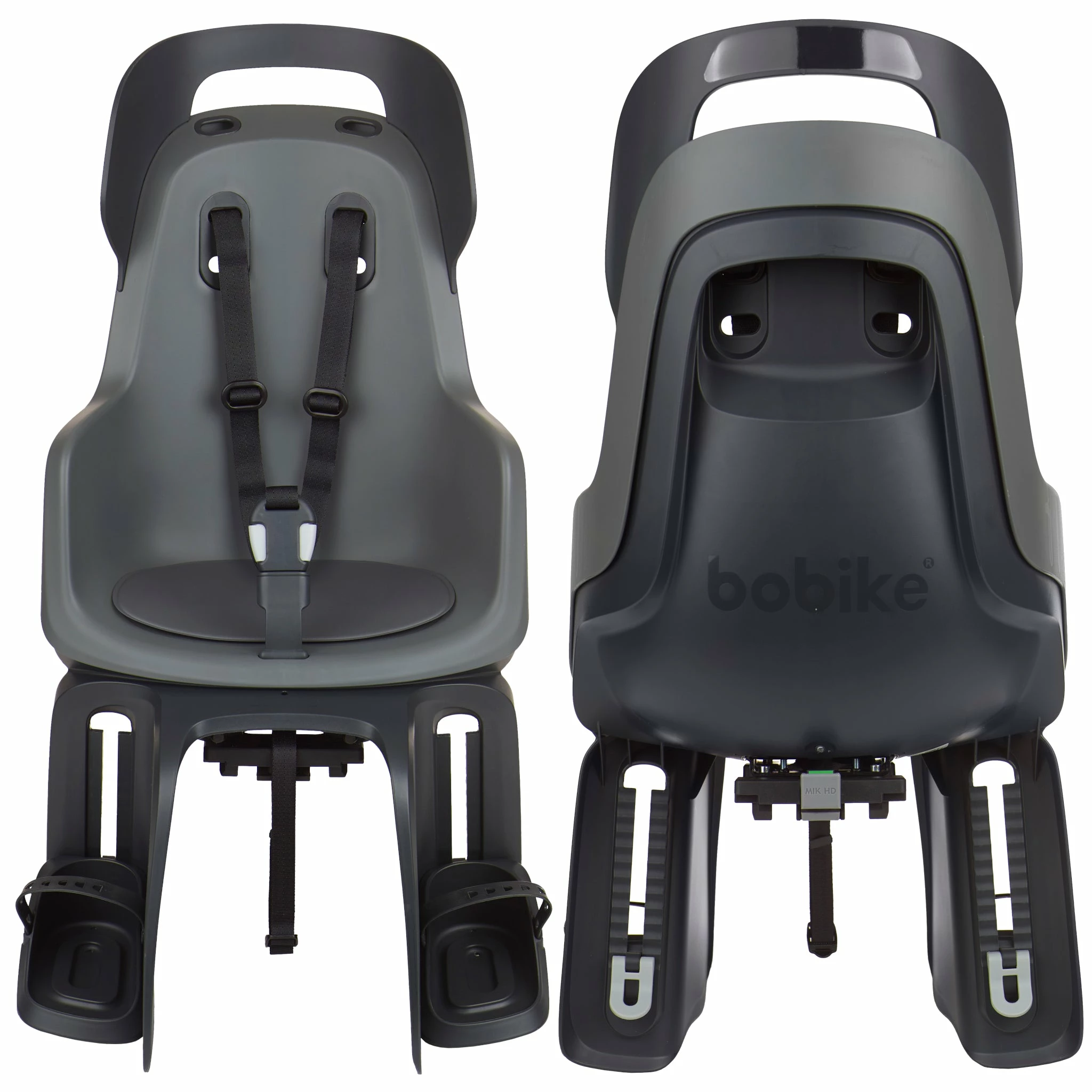- Le siège arrière gris Go Maxi Bobike sur tube de selle